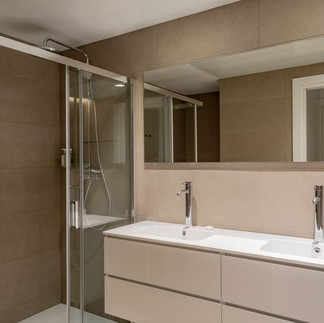 Two-bedroom apartments of about 60 sq. meters, on the ground floor and patio access. All our apartments have kitchen, dining area and two bathrooms. These apartments have a maximum capacity of 4 people, with one double bed or two twin beds in each bedroom. The building has a self-service community laundry with washers and dryers.